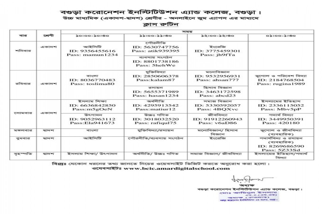 জুম অনলাইন ক্লাস রুটিন পেতে এখানে ক্লিক করুন